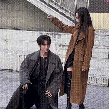 姐姐蹲下就立马把大衣拉过,